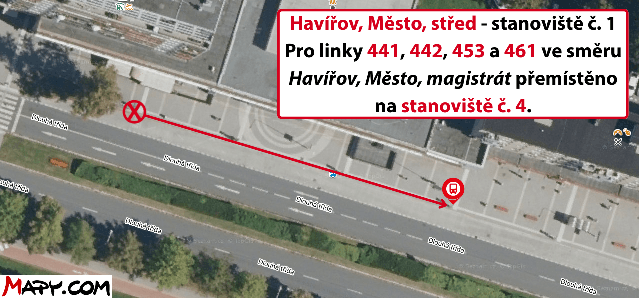 Změna v obsluze stanoviště č. 1 autobusové zastávky Havířov, Město, střed