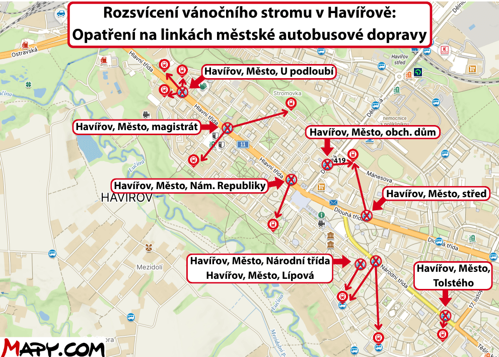 - pro linky 401, 403, 404, 405, 412 a 416 ve směru Havířov, Město, žel. st. přesunuta na ulici Hlavní třída nad kostelem sv. Anny