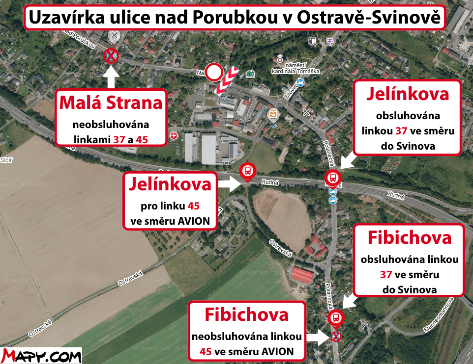 Od pondělí 10. listopadu 2025 do 31. ledna 2026 dojde ke změně v organizaci provozu autobusových linek 37 a 45 a obsluze dotčených zastávek v Ostravě-Svinově z důvodu uzavírky mostu v ulici Nad Porubkou.