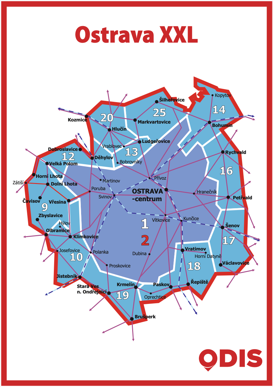 Městskou dopravu ve městech (Ostrava, Havířov, Frýdek-Místek, Karviná, Orlová, Český Těšín a další města)